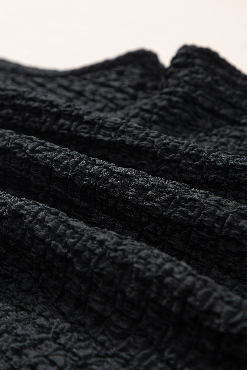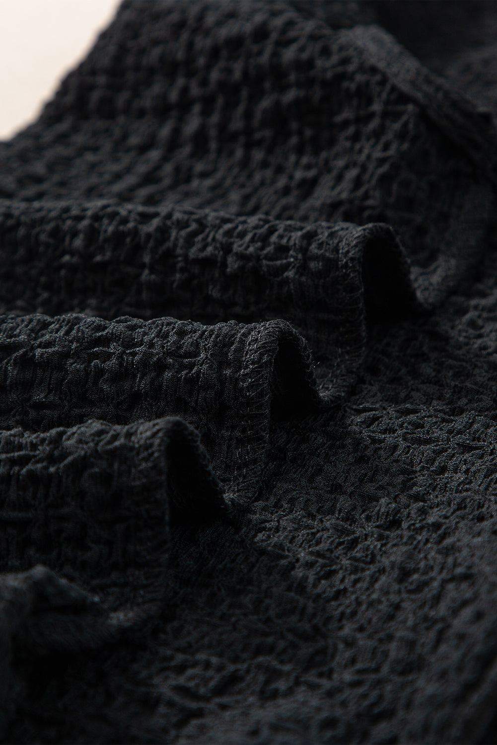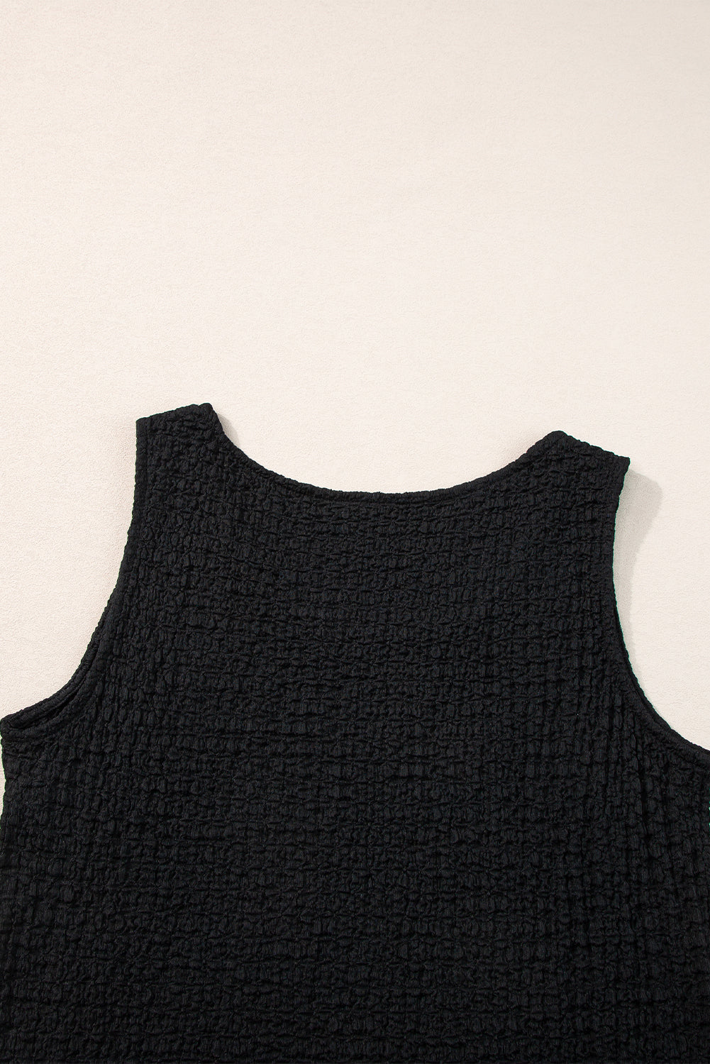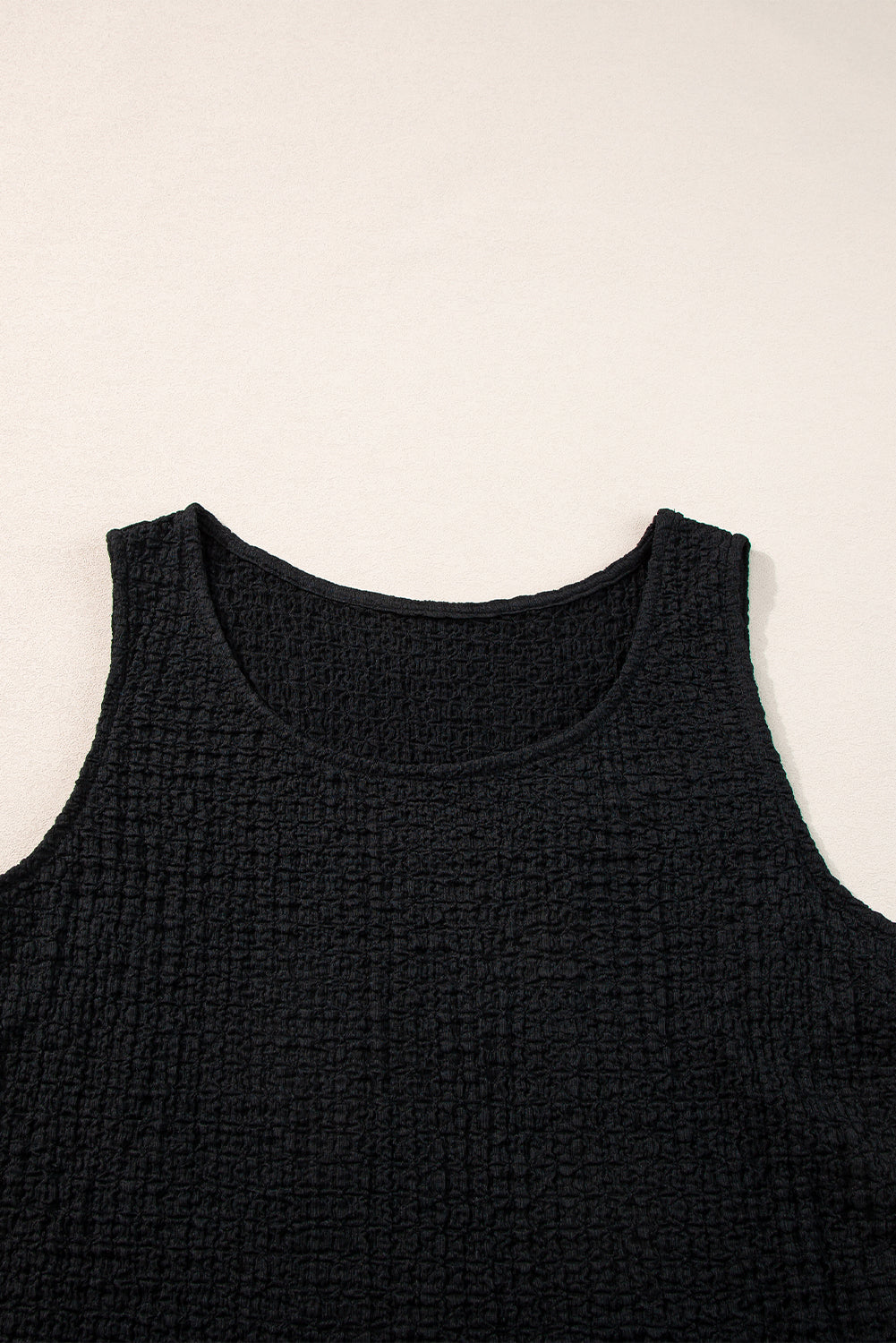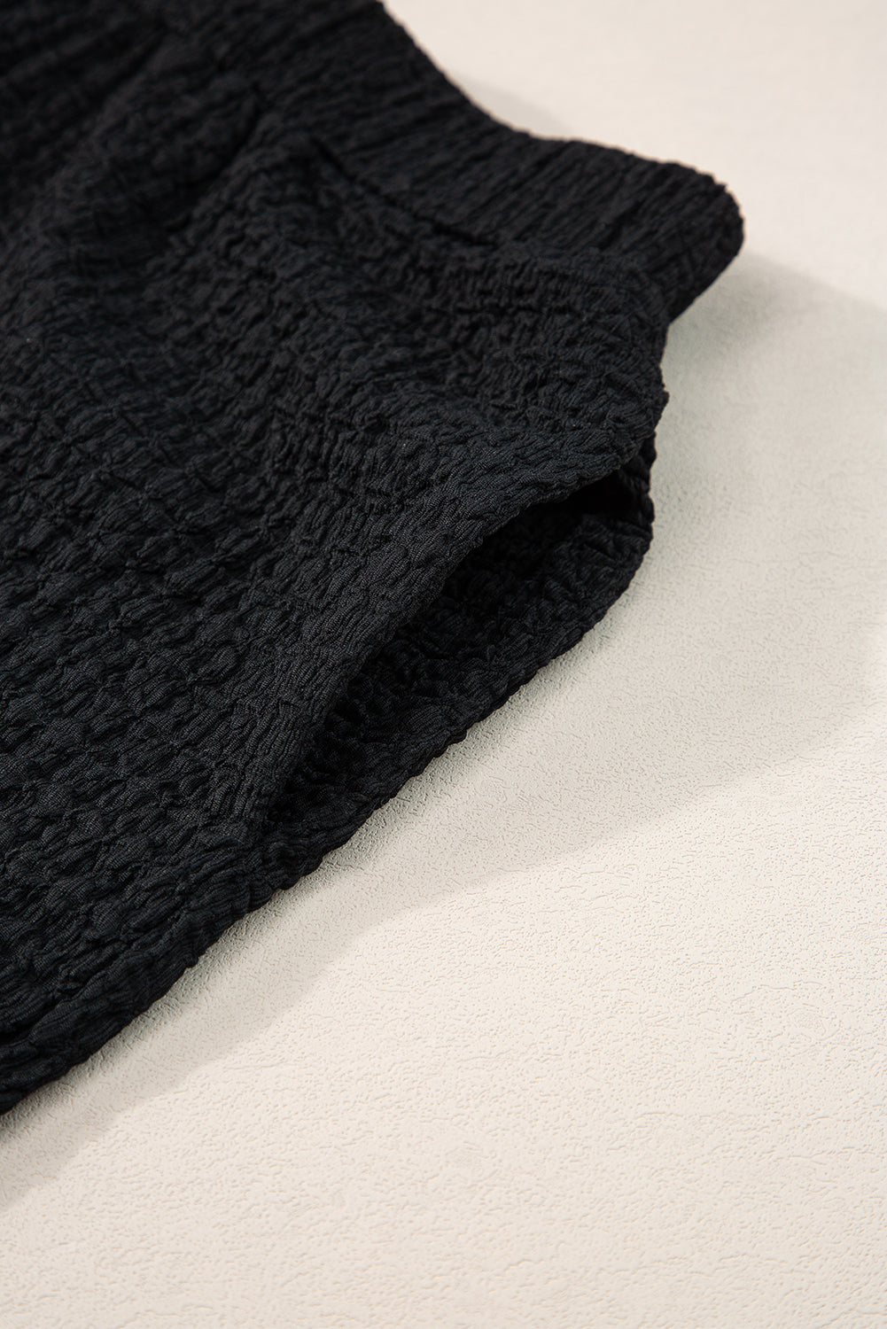 Black Crinkled U Neck Tank Top and Wide Leg Pants Set