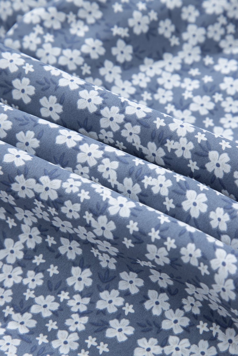 Dusk Blue Thin Straps Smocked Bodice Wide Leg Floral Jumpsuit