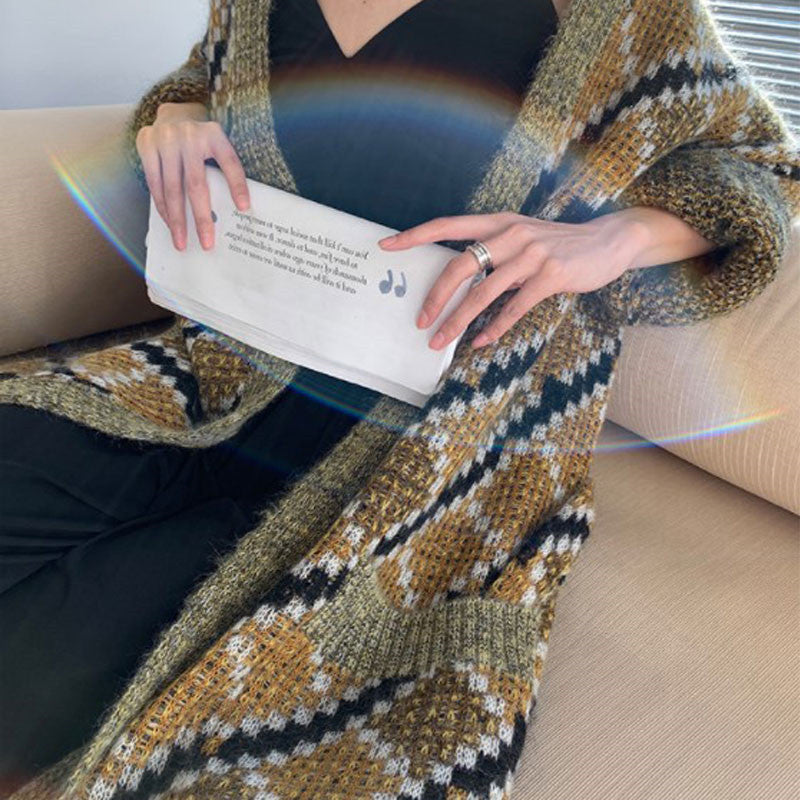 Mohair French Style Long Sleeve Loose Knitted Cardigan Coat For Women