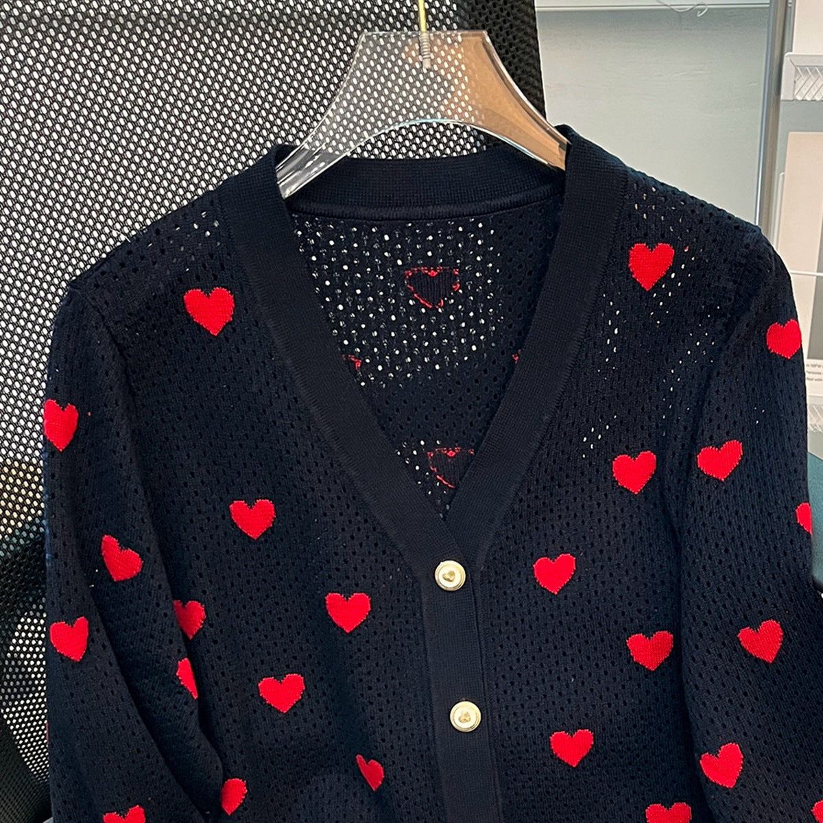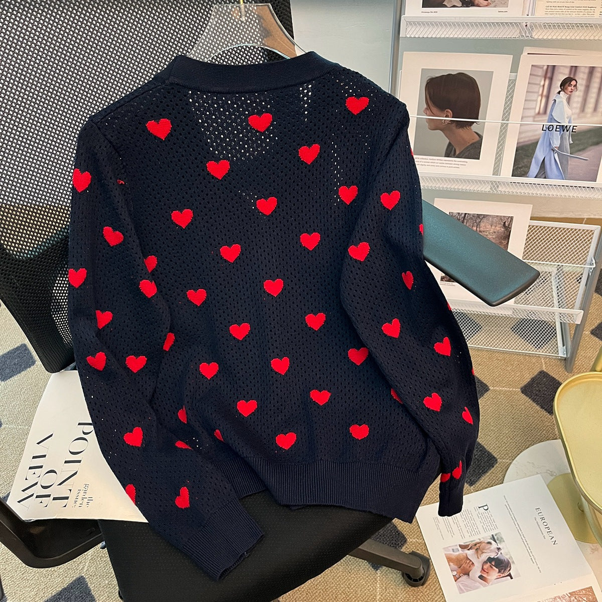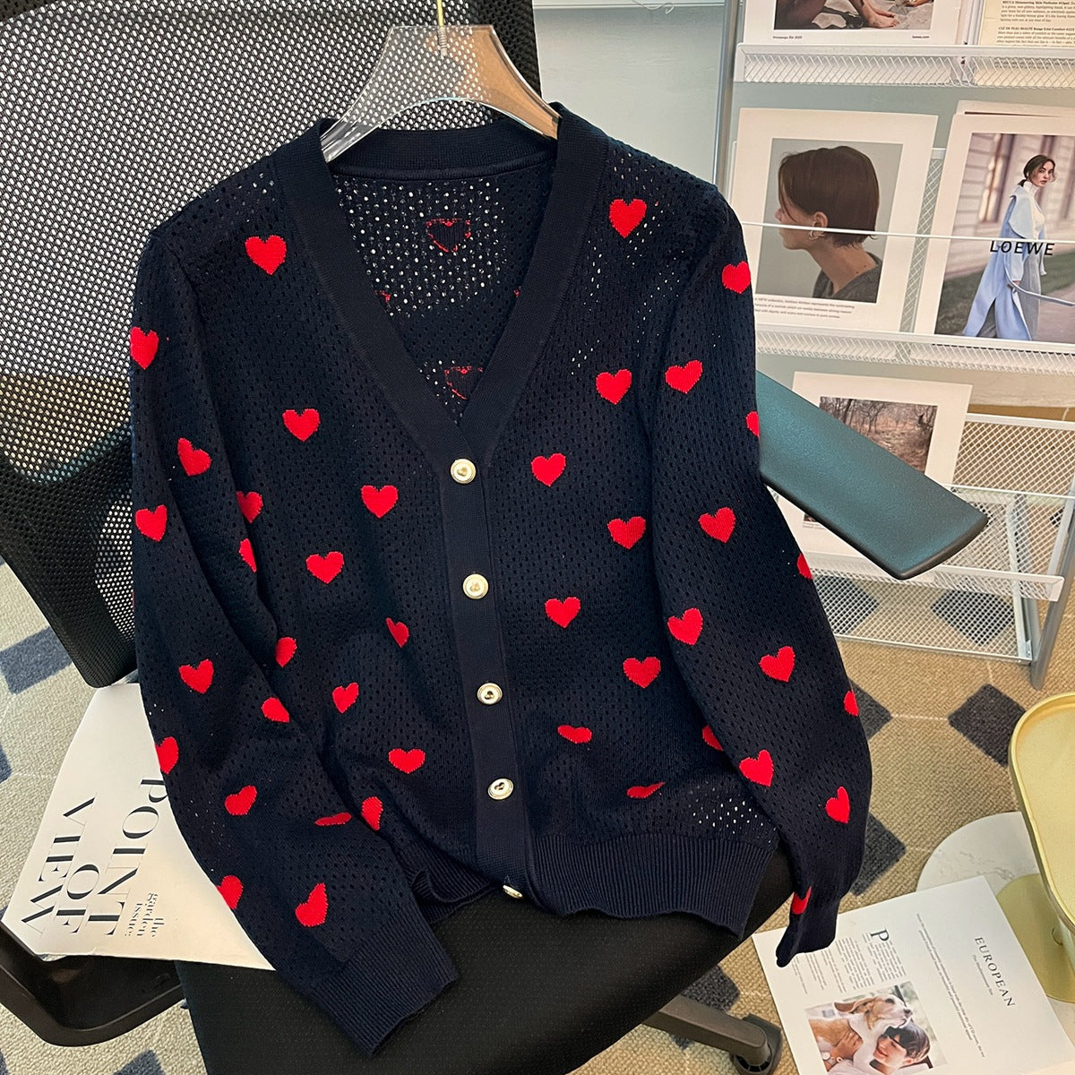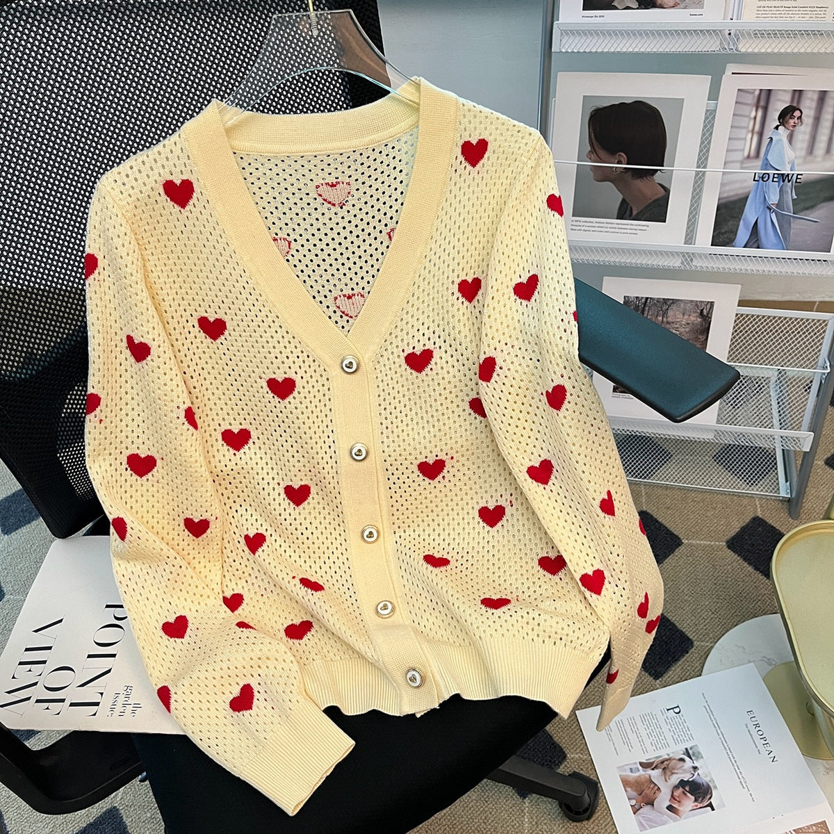 New Hollow Cardigan V-neck Love Jacquard Casual Elegant Wool Knitted Coat For Women