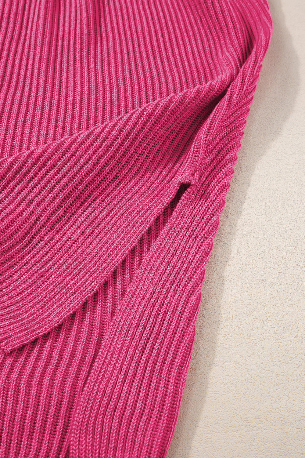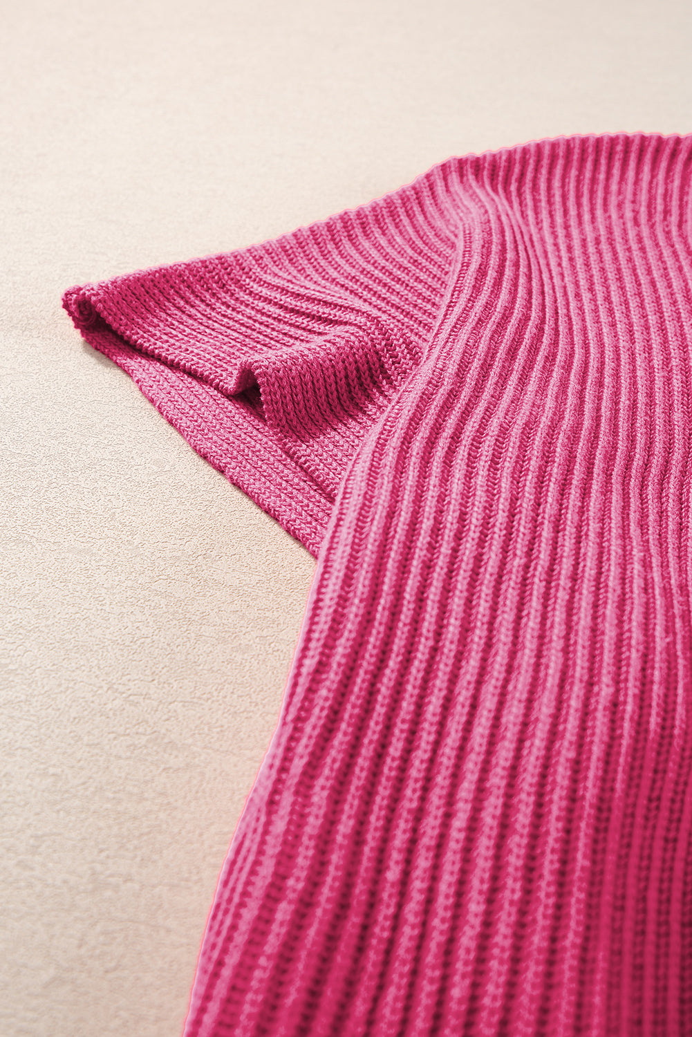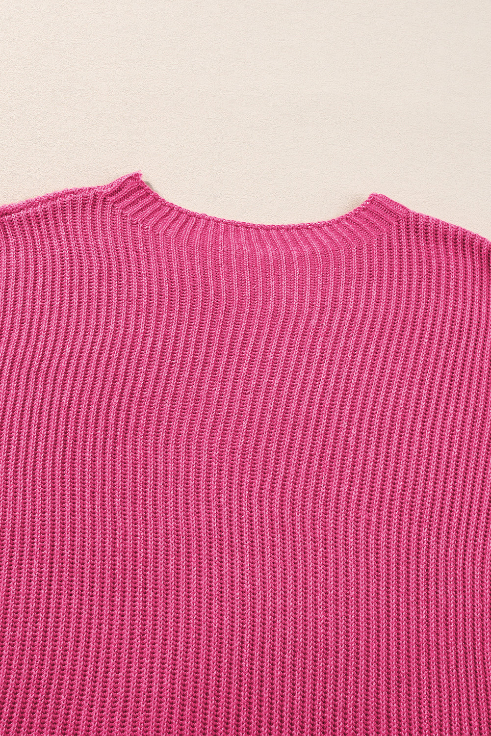 Rose Red Short Sleeve Side Slit Oversized Sweater